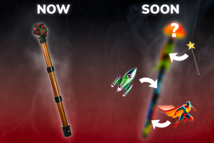 The first step on an epic journey. The Deluxe D20 Staff is a TTRPG player's dream come true