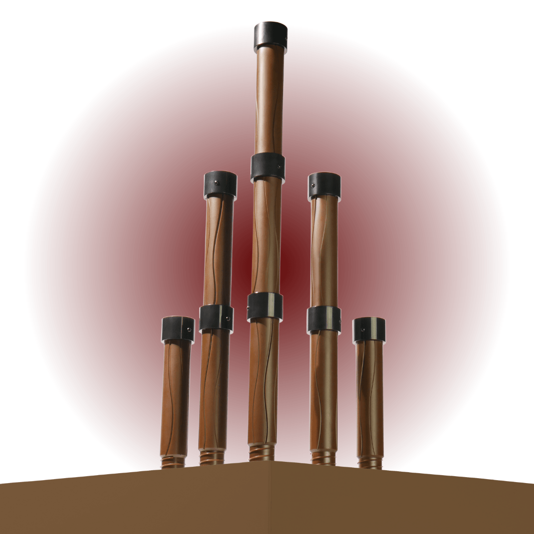 The sections of the Deluxe D20 Staff of Critical Hits are in a medieval style, inspired by wood and iron. And of course the number of sections can be changed to suit the height, preference and purpose of the wielder.